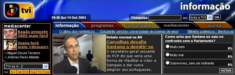 Mais uma sondagem à TVI. Mas desta vez mais imparcial... não há votos. Como dizia alguem num comentário a um post das "Renas e Veados", isto não são arredondamentos!!!!